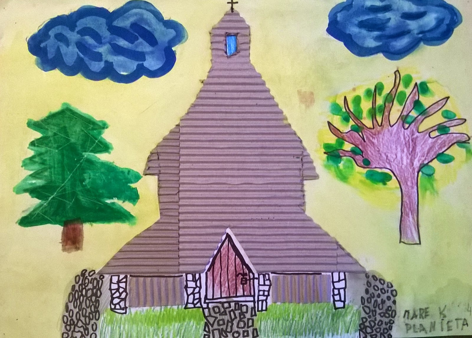 Našou úlohou bolo kostolík výtvarne stvárniť, prípadne zhotoviť jeho model. Tu sú naše práce: